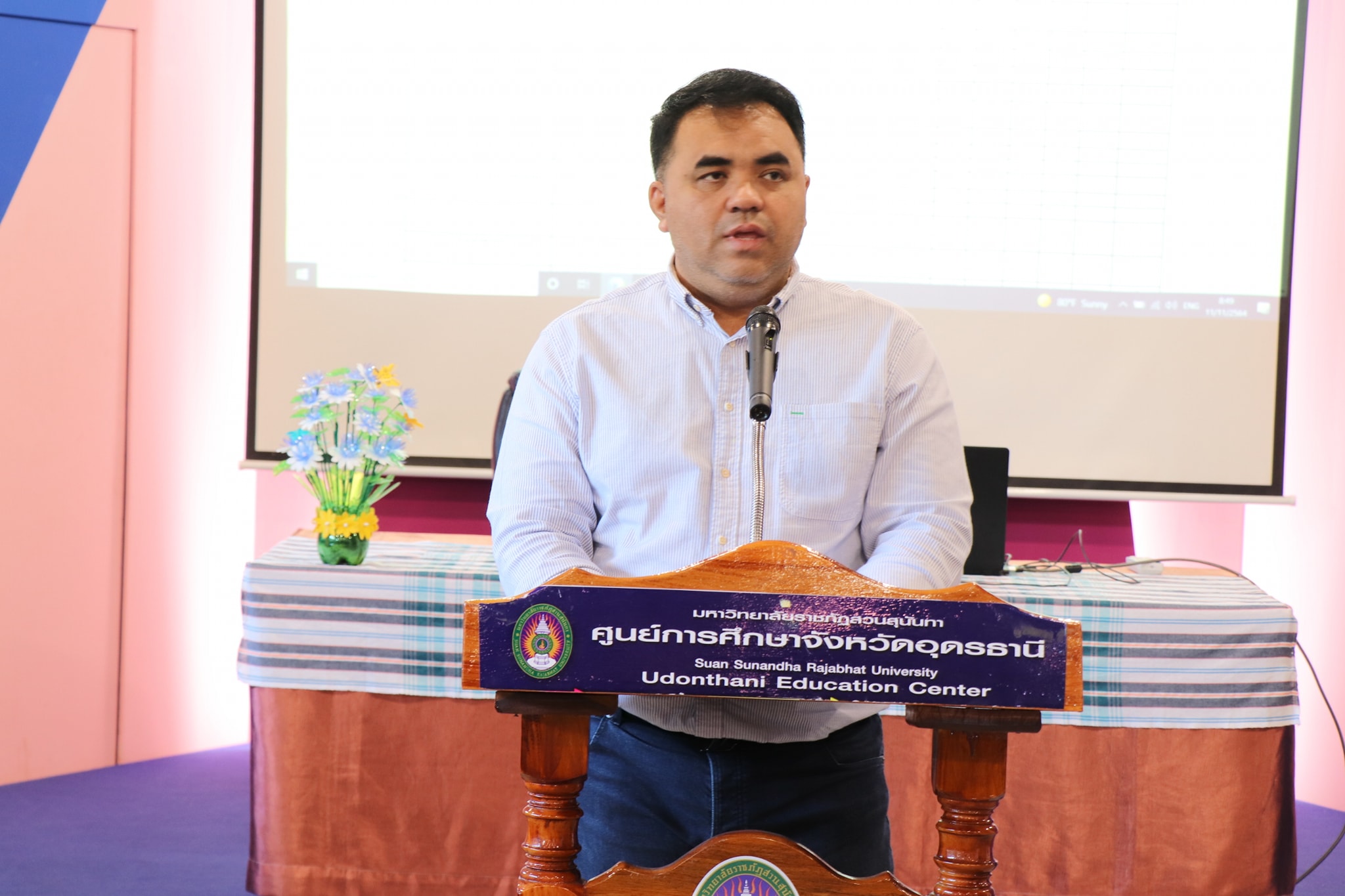 วันที่ ๑๑ พฤศจิกายน ๒๕๖๔ เวลา ๐๙.๐๐ น. ณ ห้องประชุมช่อทองกวาว มหาวิทยาลัยราชภัฏสวนสุนันทา ผู้ช่วยศาสตราจารย์ ดร.คมสัน โสมณวัตร รองอธิการบดีวิทยาเขตนครปฐม มหาวิทยาลัยราชภัฏสวนสุนันทา เป็นประธานในการประชุมการกำหนดทิศทาง และมอบหมายงาน ศูนย์การศึกษาจังหวัดอุดรธานี