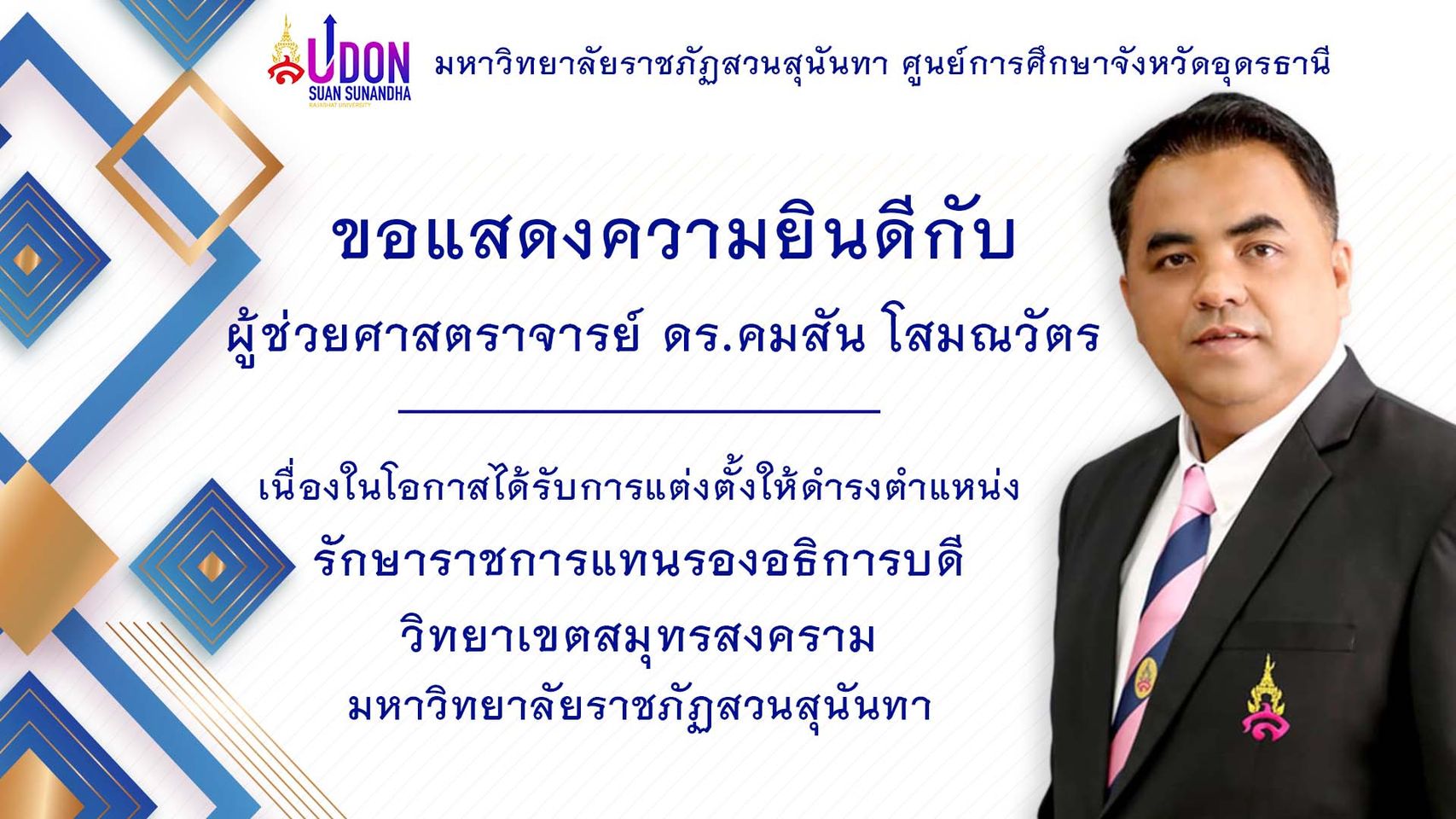Congratulations to ✨ Asst. Prof. Dr. Komsan Somanwat ✨ on the occasion of being appointed to the position Acting Vice Rector Samut Songkhram Campus Suan Sunandha Rajabhat University ????