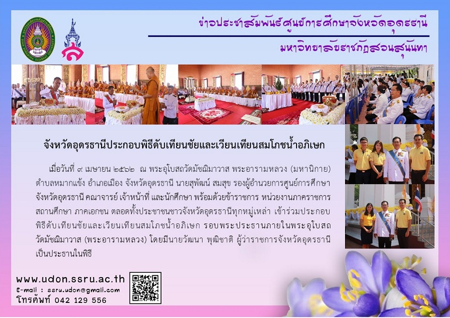 on 9th April 2019 at Matchimawas Ubosoth. Mr. Supat Somsook, the Deputy Director with staff members with government and private sectors had attended the quenching candle and water clock-wise ceremony with Mr. Wattana Puttichat, the Governor of Udon Thani was the head of the ceremony.