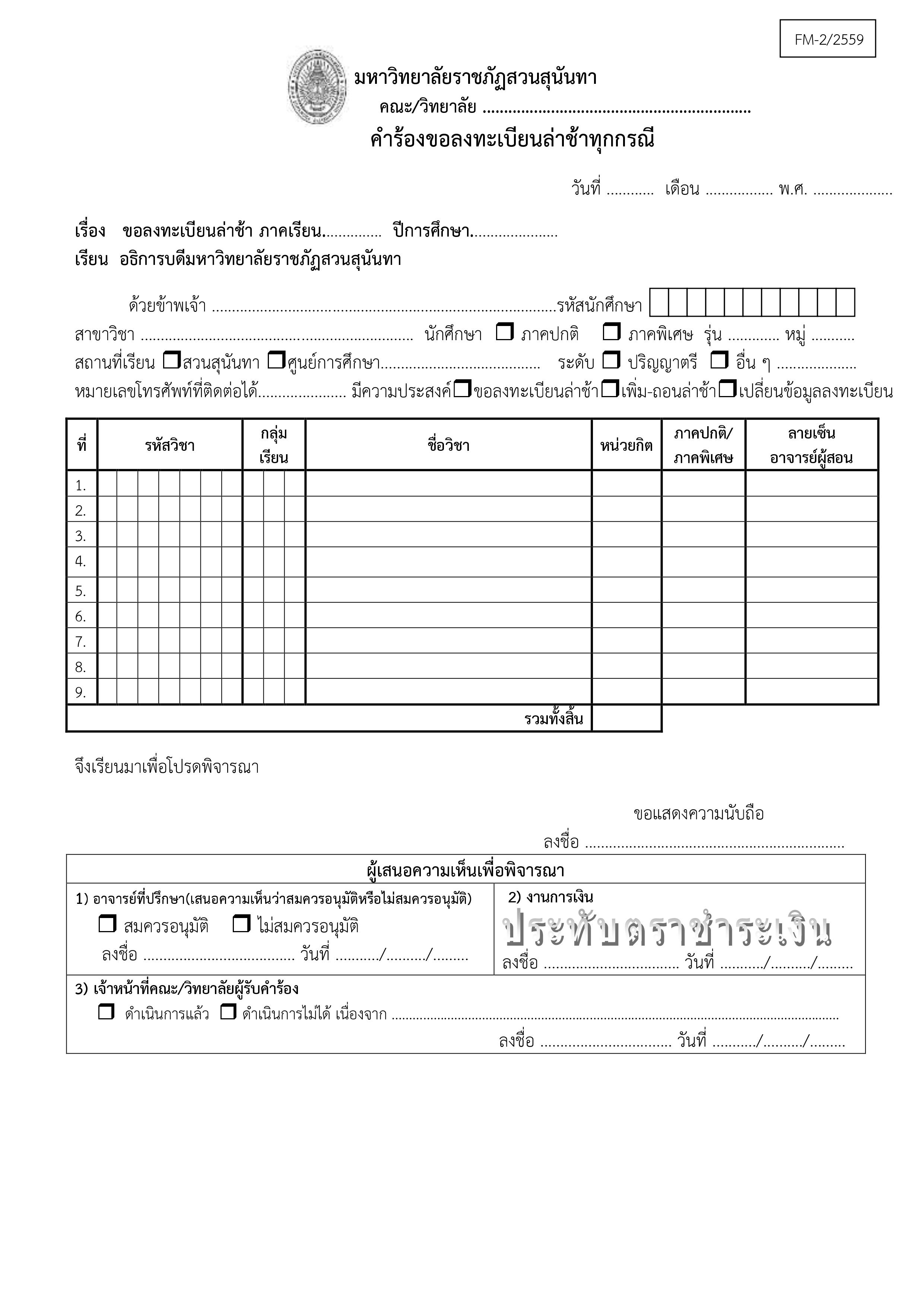 คำร้องขอลงทะเบียนเรียนล่าช้า