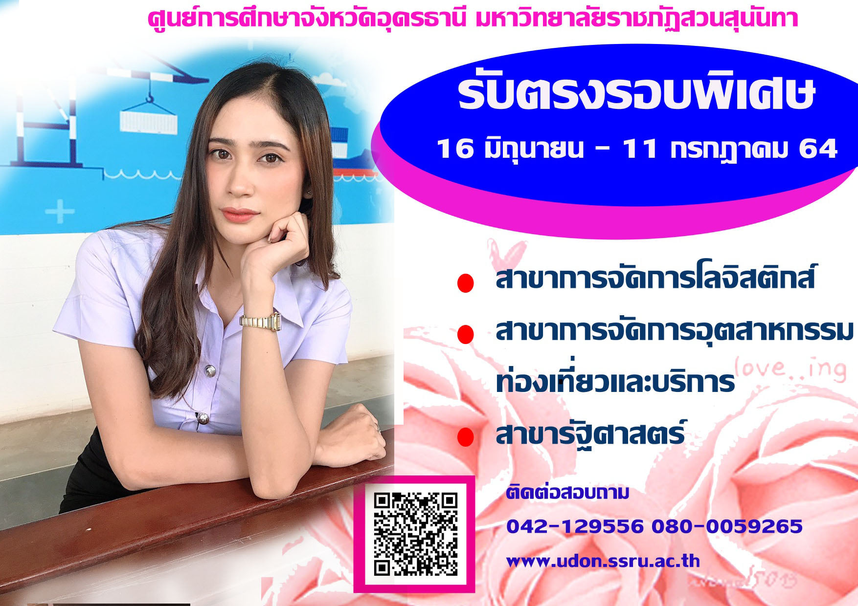 ศูนย์การศึกษาจังหวัดอุดรธานี มหาวิทยาลัยราชภัฏสวนสุนันทา เปิดรับสมัครนักศึกษาใหม่ ระดับปริญญาตรี ภาคปกติ