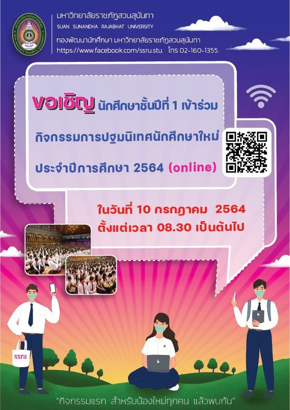 ขอเชิญนักศึกษาชั้นปีที่ 1 รหัส 64 เข้าร่วมกิจกรรมการปฐมนิเทศนักศึกษาใหม่ ประจำปีการศึกษา 2564