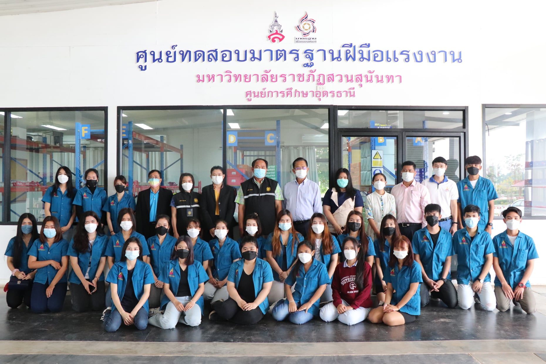 วันที่ 18 กุมภาพันธ์ 2565 เวลา 10.30 น. นายสุพัฒน์ สมสุข รักษาการรองผู้อำนวยการฝ่ายกิจการพิเศษ ศูนย์การศึกษาจังหวัดอุดรธานี มหาวิทยาลัยราชภัฏสวนสุนันทา พร้อมด้วยคณะอาจารย์ สาขาวิชาการจัดการโลจิสติกส์ ต้อนรับ คณะกรรมการในการตรวจสอบมาตรฐานฝีมือแรงงาน สถาบันพัฒนาฝีมือแรงงาน 18 จังหวัดอุดรธานี ณ ห้องประชุมสามพร้าว ศูนย์การศึกษาจังหวัดอุดรธานีมหาวิทยาลัยราชภัฏสวนสุนันทา เนื่องในโอกาสตรวจเยี่ยมศูนย์การทดสอบมาตรฐานฝีมือแรงงานแห่งชาติ