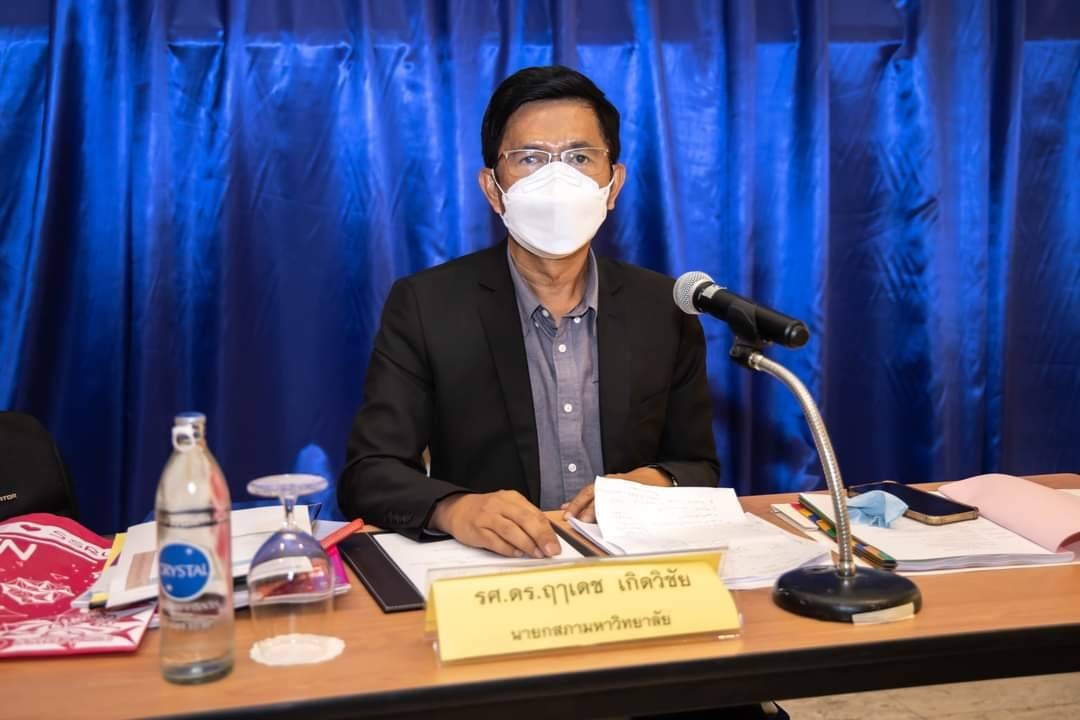 วันที่ ๒๑-๒๒ ธันวาคม ๒๕๖๔ ผู้ช่วยศาสตราจารย์ ดร.ภัทรวิทย์ อยู่วัฒนะ รักษาการผู้อำนวยการศูนย์การศึกษาจังหวัดอุดรธานี เข้าร่วมประชุมสภามหาวิทยาลัย ครั้งที่ ๑๒/๒๕๖๔ โดยมี รองศาสตราจารย์ ดร.ฤๅเดช เกิดวิชัย นายกสภามหาวิทยาลัย เป็นประธานการประชุม เพื่อร่วมหาแนวทางการพัฒนามหาวิทยาลัย วิเคราะห์จุดแข็งและจุดอ่อนที่ต้องการพัฒนาศักยภาพให้สอดคล้องกับทิศทางและจุดเน้นของประเทศ