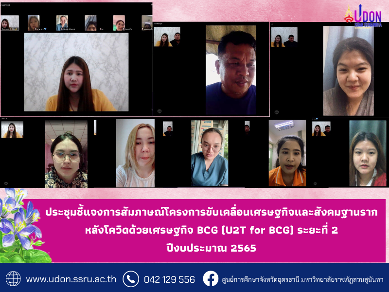 ประชุมชี้แจงการสัมภาษณ์โครงการขับเคลื่อนเศรษฐกิจและสังคมฐานรากหลังโควิดด้วยเศรษฐกิจ BCG (U2T for BCG) ระยะที่ 2 ปีงบประมาณ 2565