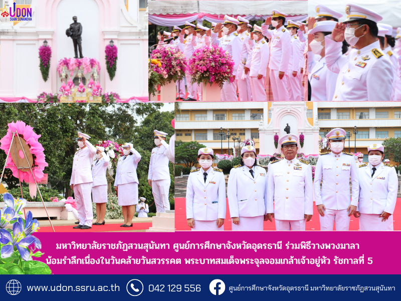 มหาวิทยาลัยราชภัฏสวนสุนันทา ศูนย์การศึกษาจังหวัดอุดรธานี ร่วมพิธีวางพวงมาลา น้อมรำลึกเนื่องในวันคล้ายวันสวรรคต พระบาทสมเด็จพระจุลจอมเกล้าเจ้าอยู่หัว รัชกาลที่ 5