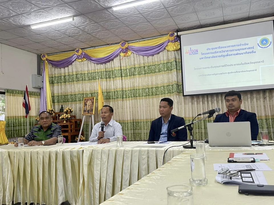 วันที่ 2 พฤศจิกายน 2565 ผู้ช่วยศาสตราจารย์ ดร.ภัทรวิทย์ อยู่วัฒนะ ผู้อำนวยการศูนย์การศึกษาจังหวัดอุดรธานี พร้อมด้วยคณะผู้บริหาร เข้าพบนายทวน ช่างแคน นายกองค์การบริหารส่วนตำบลเขือน้ำ และคณะผู้บริหารเพื่อร่วมประชุมหารือแนวทางการดำเนินงานโครงการยุทธศาสตร์ราชภัฏเพื่อการพัฒนาท้องถิ่น ประจำปีงบประมาณ พ.ศ. 2566 เพื่อดำเนินการตามแนวทางพัฒนาคุณภาพชีวิตและยกระดับเศรษฐกิจฐานรากของประชาชนในพื้นที่ตำบลเขือน้ำ อำเภอบ้านผือ จังหวัดอุดรธานี ณ ห้องประชุมองค์การบริหารส่วนตำบลเขือน้ำ อำเภอบ้านผือ จังหวัดอุดรธานี