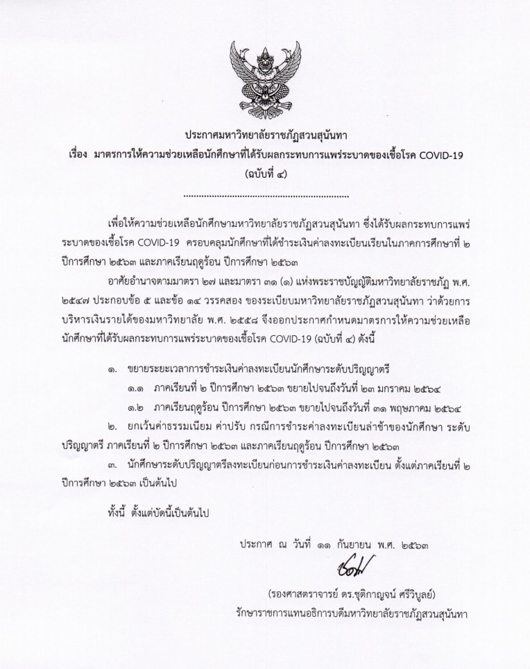 ประกาศมหาวิทยาลัยราชภัฏสวนสุนันทา