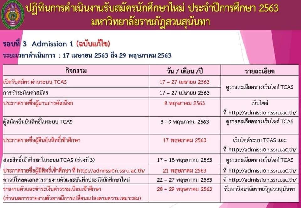 #ดูรายละเอียดเพิ่มเติมที่http://admission.ssru.ac.th/