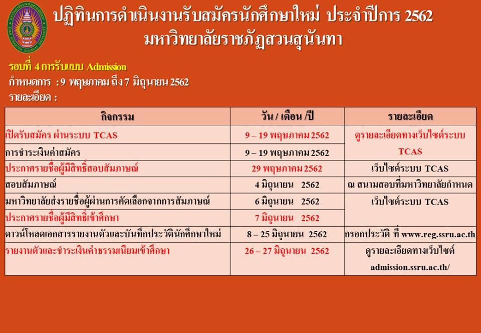 รายละเอียดเพิ่มเติม >> https://admission.ssru.ac.th/